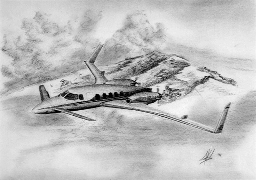 An 8" by 11" drawing of a Beechcraft Starship One aptly named "Starship One". Prints of this drawing are also available. Please see the Artwork Page for details.