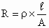 導體的電阻 R 與它的長度 l 成正比,而與它的横截面積 A 成反比。