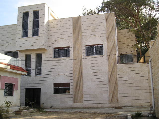 الأسمنت والحديد وبعضها تم تلبيس جدرانه الخارجية بالحجر الأبيض بدلاً من الطلاء