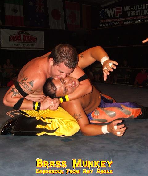 Brass Munkey ties up Evan Banks in tag team CWF Mid Atlantic tag team action in Burlington NC [07.19.08]