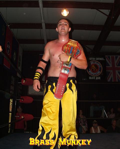 Brass Munkey displays his newly-won AWA Mid Atlantic Television Title strap after dropping former champ Michael McAllister like a bad habit at CWF Mid Atlantic's Carolina Sports Arena [07.29.06]