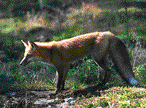 Fox- The red fox which is shown in this picture has a red coat and a bushy tail. It is a very good hunter. It eats anything from rodents, rabbits to fruits and sometimes garbage.