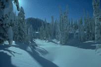 The trees are narrow and grow very close together. This is so they can help protect each other from the weather. That snow and wind can be really cold!