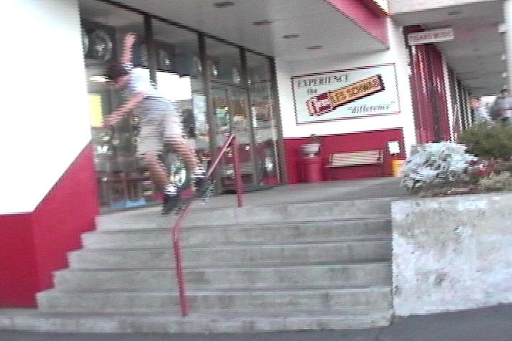i did another handrail today. a 6 stair one by Fred Myers in Tigard. theres a whole bunch of stairs... you can hit um all up and do pretty cool lines. they go like this, 4, 5, 5, 6 with a handrail. its pretty fun. i did a really cool line where i ollied up the 4-stair, turned around and 180ed down the 4-stair, ollied the 5, ollied the other 5, and boardslid the 6 rail. its all on film and prob gonna be in my next vid.