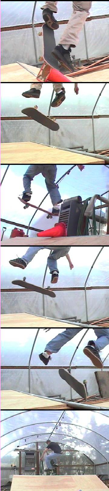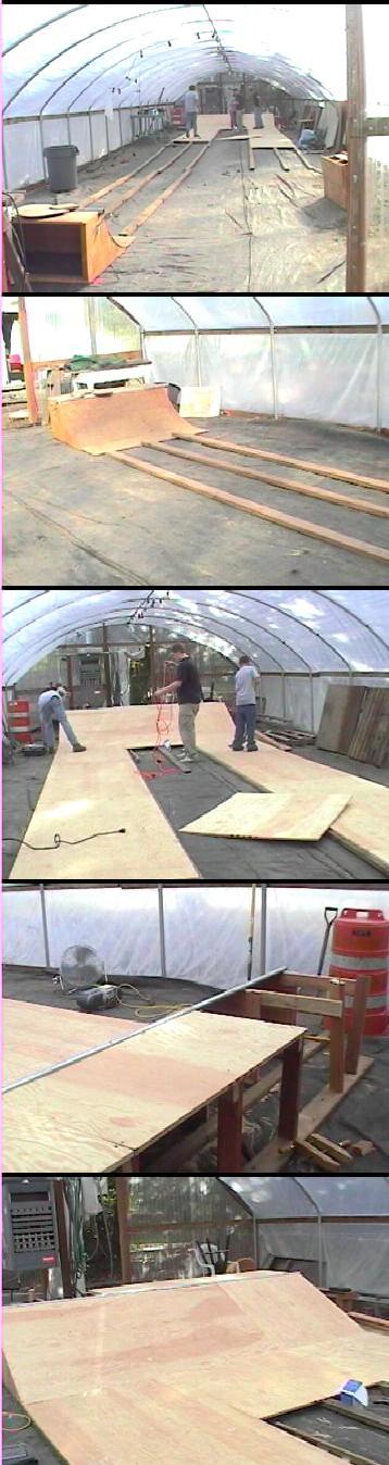 The GreenhouseI had this greenhouse set up last year but EVERYTHING was make-shift and overall pretty scetchy. by the end of the winter, though, trev and i had it down pretty good. we had two rails, two funboxes, a launch ramp, a bank (only to drop in on cuz it wasnt stable, and a really sketchy STEEP quater pipe. the floor was plywood that we overlapped so you could only skate in one direction. it was a great place to get out of the rainy winter, and we had lights and power back there so i played music. it was nothing like it is now...Trever, Jeff, and I have TOTTALY re-done the entire place. it is now pimp-shit. we re-did the whole floor with thick 3/4 in high grade sanded plywood. we elevated it with 2 by 4's to level it out and creat a seemless run, and we have added a 12foot wide bank and a new quarter pipe. the bank is deffinatly the funnest thing in there right now, and the floor is very smooth and great to skate. jeff and i were walking out of the PSAT's on saterday and we saw a couch for sale in the commons (i guess the theater was selling it or somthing) so we got a couch for $20. i put a fridge back there so we always have chilled beverages and my sterio so we got tunes. the place is all indoor and level and nice and pirfect. im happy!
