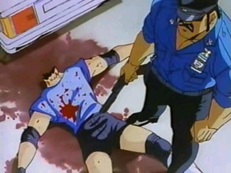 Here's one of my favorite anime from a while back. It doesn't have any cute animals, or big flying robots- but what it does have is a ton of ridiculous cursing, lots of street punks blown to bits, and Officer "Mad Bull" Sleepy getting more ass than a toilet seat... Anyway, it is pretty funny. You might be able to find it in a bargain bin somewhere- Remember, you want episode one... it seems that shows that are this psycho fall apart the more episodes they are dragged on.
