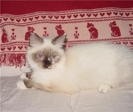 Chloe,is a seal tortie. She is a Queen in waiting.She just loves to mother all the babies.