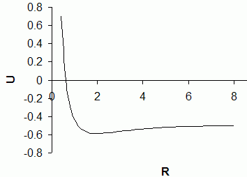 is U (= Eel+VNN) = (Haa+Hab)/(1+Sab) + 1/R