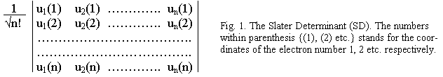Slater Determinant (SD, Fig. 1) D of the n occupied spin-orbitals (SOs) ui