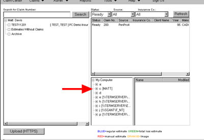 5.) Open processclaims. Log in and go to the upload screen (claims > estimate > upload estimate).