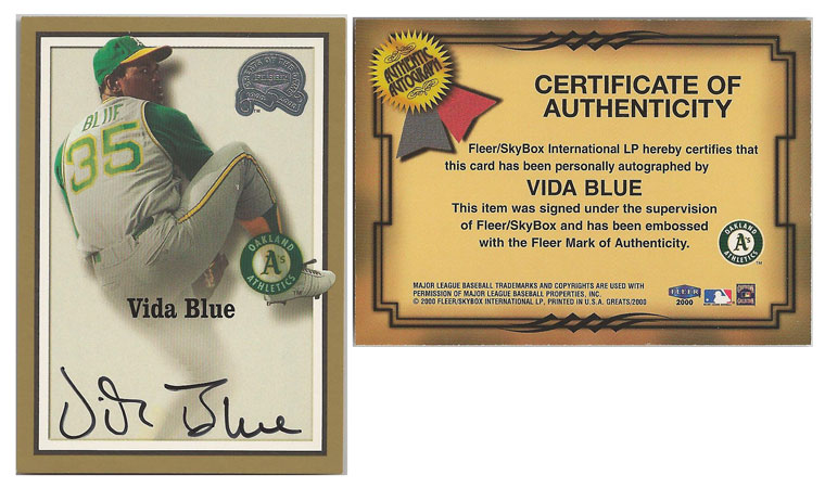 1971 AL - Vida Blue - Oakland Athletics - 2000 Fleer Greats Of The Game Autograph NNO