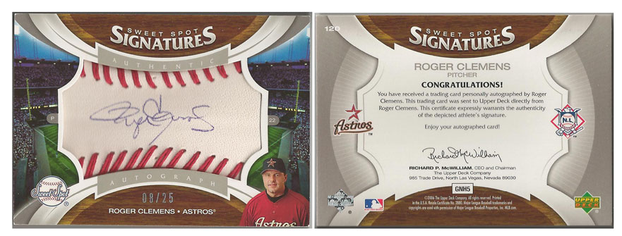 2004 NL - Roger Clemens - Houston Astros - 2006 Sweet Spot Signatures Red Stitch Blue Ink #120 #'d 08/25
