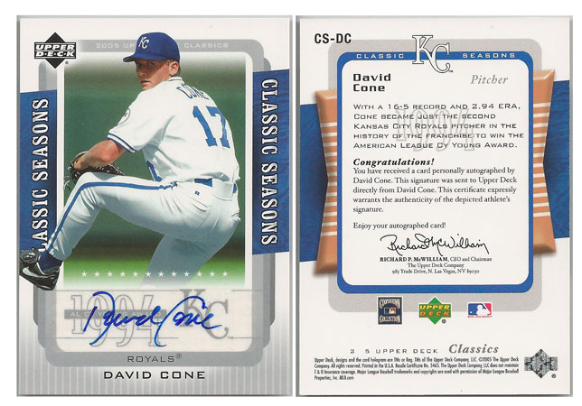1994 AL - David Cone - Kansas City Royals - 2005 Upper Deck Classic Seasons Signatures #DC