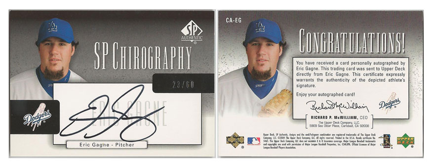 2003 NL - Eric Gagne - Los Angeles Dodgers - 2004 SP Authentic Chirograph Silver #CA-EG #'d 23/60