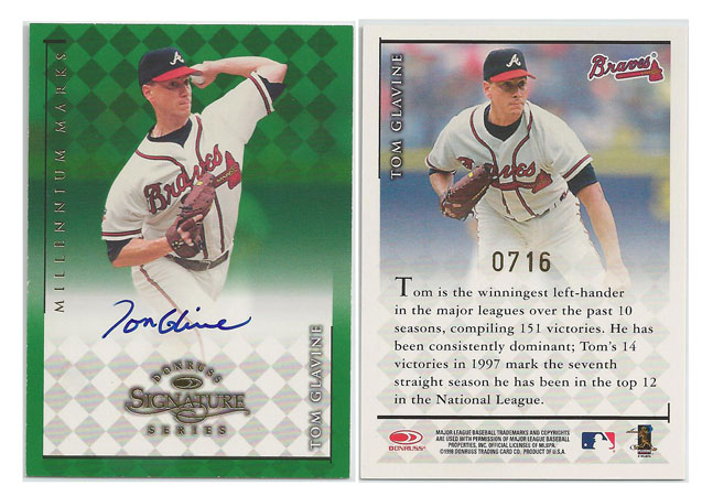 1998 NL - Tom Glavine - Atlanta Braves - 1998 Donruss Signature Series Millennium Marks #48 #'d 0716/1000