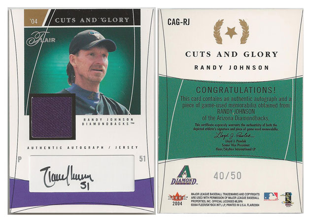 2000 NL - Randy Johnson - Arizona Diamondbacks - 2004 Flair Cuts & Glory Game-Used Jersey & Autograph #CAG-RJ #'d 40/50