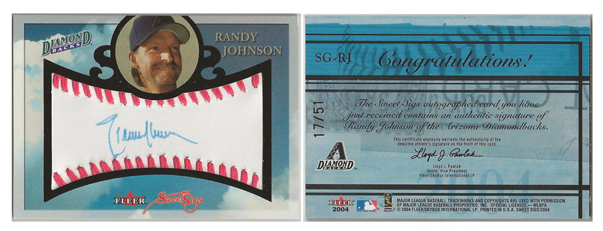 2002 NL - Randy Johnson - Arizona Diamondbacks - 2004 Fleer Sweet Sigs #SG-RJ #'d 17/51