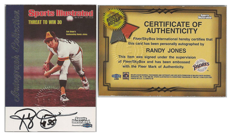 1976 NL - Randy Jones - San Diego Padres - 1999 Sports Illustrated Autograph Collection NNO