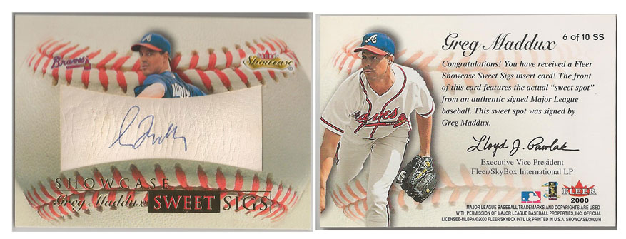 1992 NL - Greg Maddux - Atlanta Braves - 2000 Fleer Showcase Sweet Sigs #SS6