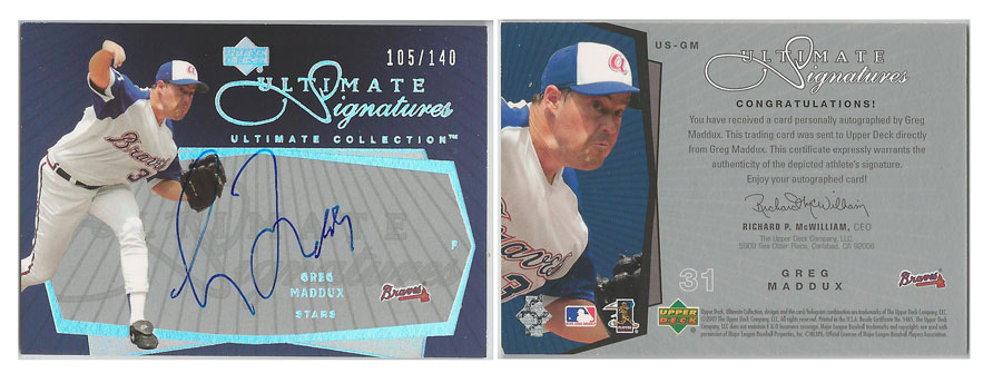 1995 NL - Greg Maddux - Atlanta Braves - 2003 Upper Deck Ultimate Collection Ultimate Signatures #US-GM #'d 105/140