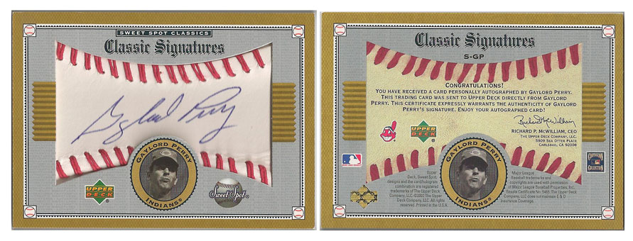 1972 AL - Gaylord Perry - Cleveland Indians - 2002 Sweet Spot Classics Classic Signatures #S-GP