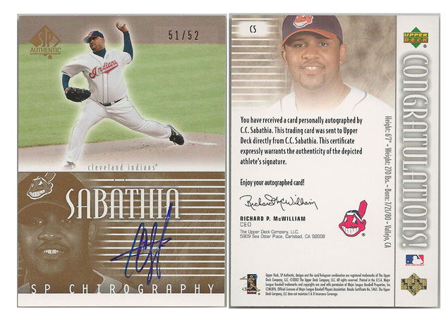2007 AL - C.C. Sabathia - Cleveland Indians - 2002 SP Authentic Chirography Gold #CS #'d 51/52