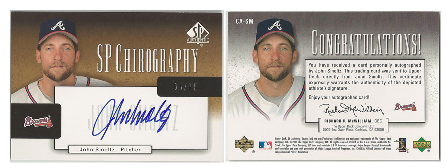 1996 NL - John Smoltz - Atlanta Braves - 2004 SP Authentic Chirography #CA-SM #'d 65/75