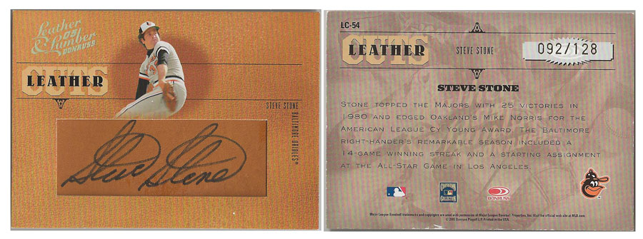 1980 AL - Steve Stone - Baltimore Orioles - 2005 Leather & Lumber Leather Cuts Autograph #LC-54 #'d 092/128