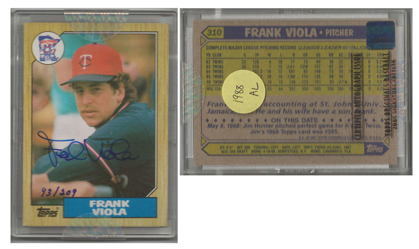 1988 AL - Frank Viola - Minnesota Twins - 2004 Topps Originals Autograph 1987 Topps #310 #'d 93/209