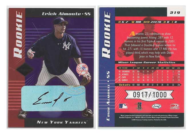 2001 Leaf Limited Autograph #319 #'d 0917/1000 |