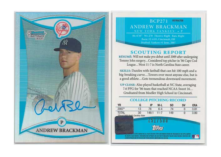 | 2008 Bowman Chrome Prospects Refractor Autograph #BCP242 #'d 012/500 |