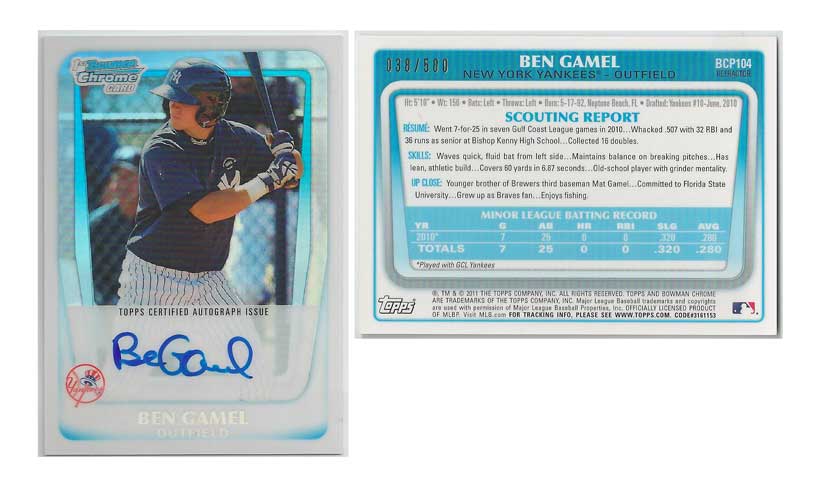 | 2011 Bowman Chrome Prospects Blue Refractor Autograph #BCP111 #'d 023/150 |