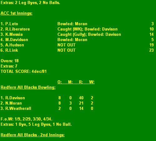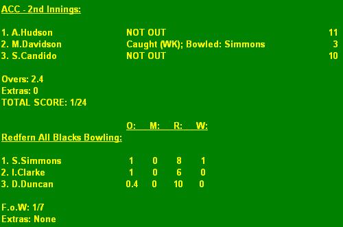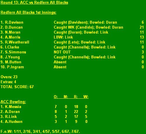 Redfern All Blacks: 67 (D.Duncan 21) (R.Link 5/17) & 28 (K.Messia 4/2, R.Link 3/25).