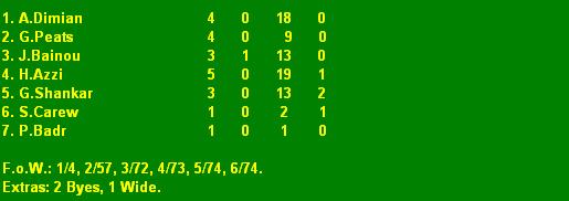 ACC: 66 (J.Bainou 2/5, G.Shankar 2/10) & 6/77 (G.Shankar 2/13)