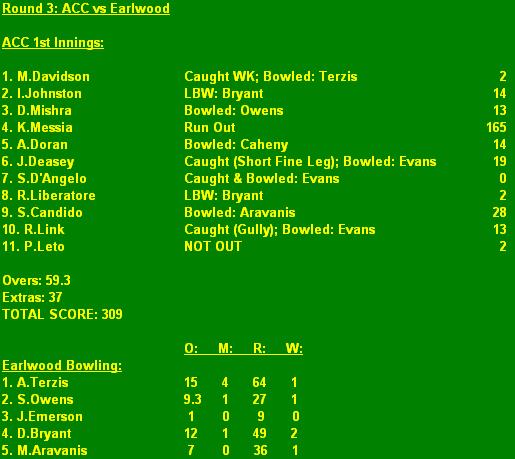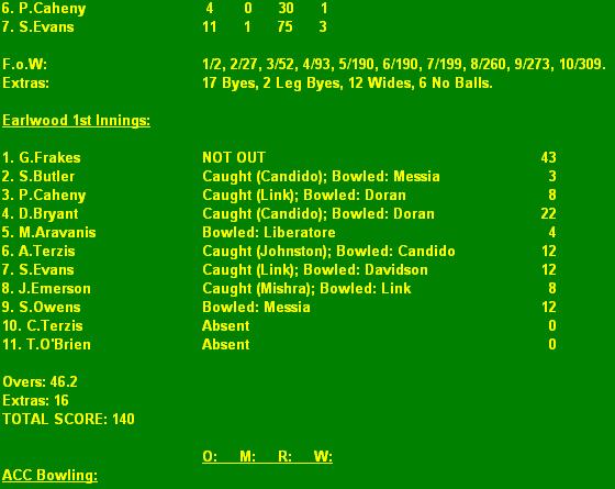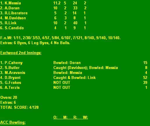 Earlwood: 140 (G.Frakes 43*) & 4/128 (D.Bryant 52)