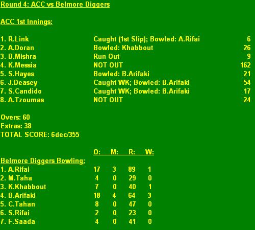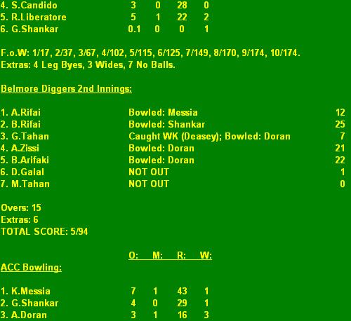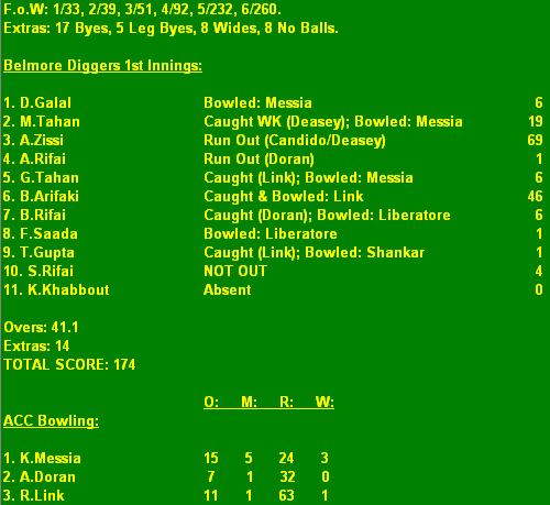 Result: ACC def. Belmore 1st Innings.