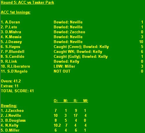 ACC: 41 (N.Kelly 4/4, J.Neville 4/17)