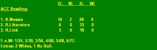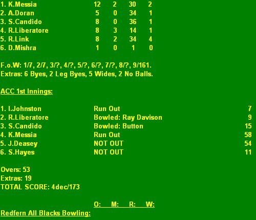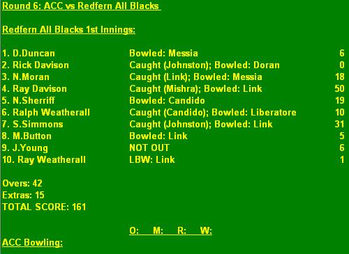 Result: ACC def. Redfern All Blacks 1st Innings.