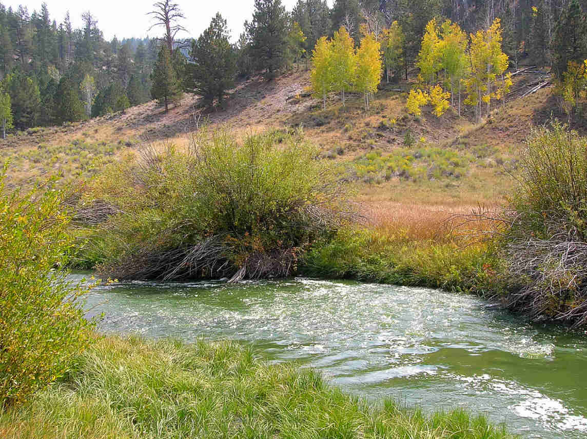 This picture of Duck Creek is about 50 miles from Bryce Canyon and this stream is fair to poor for flyfishing. The trout here are mostly Browns. For fly types to use as the fish in this stream are picky contact me.