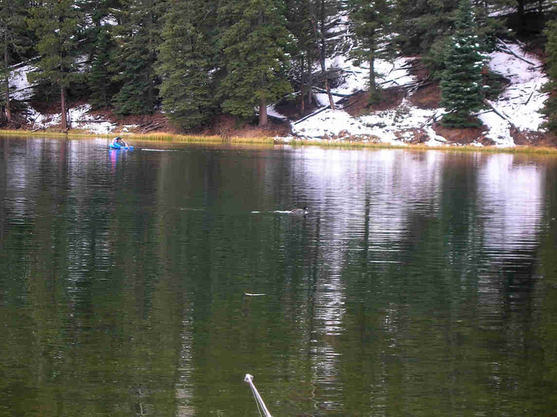 This here is a photo of Posse Lake. Located over 9000 feet up in the high mountains of the Grand Staircase National Monument, this lake which is about an hour and a half drive from Bryce, has very good fishing here and a lot of action. Also note that there is snow in the picture, which was took in early October as the weather and temperature changes rapidly in the high mountain desert even in summer.