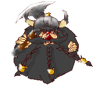 Shangut, el Matón con Arma a Dos Manos, Armadura Pesada, Gnoblar de la Suerte y "Cacho Brillamucho". |