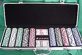 • 500 11.5g poker chips, Hot stamped with your custom logo on both sides