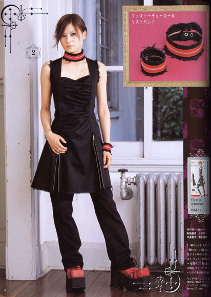 Elegant Gothic Lolita (EGL, Gothic Lolita, Goth Loli, etc., for short) is a quasi-antiquarian fashion style that emerged in Japanese subculture around 1997 and has since spread to Europe and North America. It was heavily influenced and popularized by the public images of Visual Kei bands (rock bands that placed emphasis on image, often wearing elaborate costumes for this purpose), the most obvious of which was Malice Mizer. Mana, the cross-dressing former leader of Malice Mizer and current leader of Moi Dix Mois, coined the term "Elegant Gothic Lolita" to describe his fashion line "Moi-meme-Moitie" (something like "Half Myself" in English) in 1999. Elegant Gothic Lolita imitates Victorian and Edwardian styles, and outfits are generally composed of knee-length puffed-out dresses or skirts, smocked bodices or blouses, knee-length (sometimes shorter or longer) socks or tights, platform "doll" shoes or boots, headpieces like bands of cloth or miniature top hats that tie under the chin or bonnets, sometimes crinolines, capelets, smart fitted coats, corsets, petticoats, bloomers, drawers, gloves, lacy parasols, and cute handbags that do not seem to particularly match with the rest, and often crucifixes or neck bands/"neck corsets." They are black, white, black trimmed with white, gray, red, pastel pink and blue, and sometimes have a flower print. The style features embroidery, lace, laces, frills, ruffles, ribbon, shirring, artificial corsages and roses adorning hats, etc., and often remarkable elaborateness. There are subcategories that vary in their degree of "Gothic" and "Lolita," some of which are more punkish or "gothy" as Westerners view it (i.e., more similar to Western goth fashion). The "classic" Lolita look is most antiquarian and instantly recognizable, though, like I said, there are variations. Gothic Lolitas are young females ("Elegant Gothic Aristocrat" is the male counterpart) who do not collectively listen to any particular genre of music or even necessarily display a "dark" or "rebellious" inclination; the fashion style is simply that, and is not related to musical taste (although influenced by bands) or lifestyle, as American goth, etc., is. Although "Lolita" implies a precocious, seductive young girl (the term comes from Nabokov's novel Lolita), EGL is meant to be cute (sometimes almost to the point of innocence), not sexy, and I suppose whether it's sexy or not is a matter of personal opinion. Some of it is too cutesy for my taste, but on the whole I like it immensely, and in fact any anachronistic, elegant style. Below I have assembled images galore, of classical EGL, Lolita and Lolita-influenced clothing by various designers and outlets, Mana (he makes a pretty if excessively melodramatic-looking girl), scans from the Gothic & Lolita Bible (Japanese magazine often used as a standard), and the like.