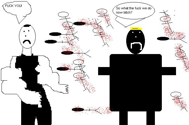 This movie is so fucking awesome it doesn't even have a story line, basically everybody just winds up dead and lying in a pool of their own blood.