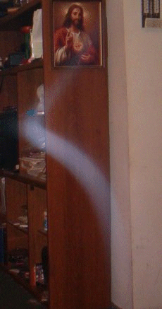 This is one of the very first photos taken with my new hp photosmart digital camera. Before I captured this 'vortex'(the term ghost hunters have coined for this particular type of anomaly) I really never thought about investigating my own condo. I've lived here with my parents since I was 10 years old, and when we moved in, the place was brand new. There is no history of any sudden death or tragic suicide. When I took this photo, I was not smoking, and the control photos I took minutes later under identical conditions came out normal.