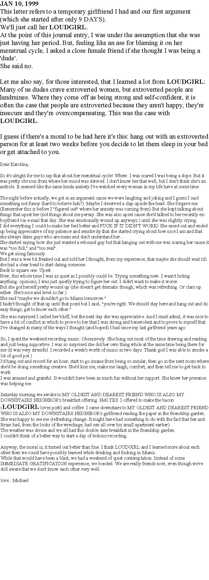 January 10, 1999: My first Argument with my Temporary Girlfriend