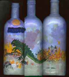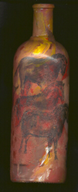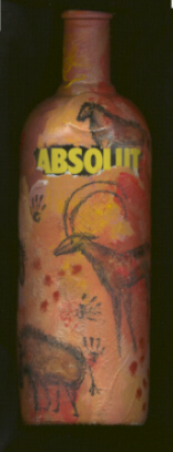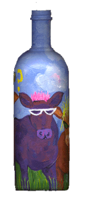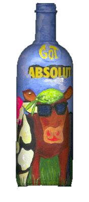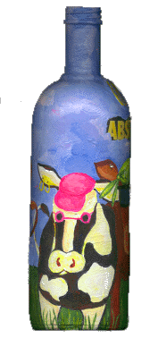 A very fine artist friend named Christine paints Absolut bottles. She sells her bottles anywhere from $100 on up, depending on what you want painted. The cow bottle featured below is my favorite. If you would like more information or would like to order one, email her at lolafish115@hotmail.com