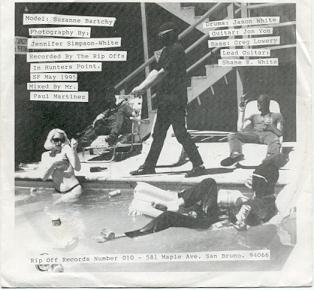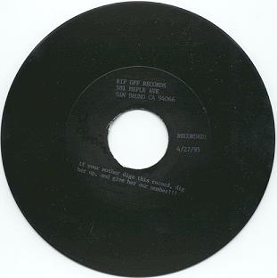 Notes: The third and last of the Rip Off Singles, it's another double sided sleeve with a sexy girl's boobies almost showing. This record has a insanely rare 2-sided version which has a third song, "Fast Livin'" on the flip. I have no idea for sure but I would guess about 50 of these bad boys were pressed, no more than 100. I've seen one for sale once, when I bought it for a song on eBay, so keep an eye out kiddies. In the dead wax on side 1 it says "You are a winner" meaning you got your order in and got one of the first 50-100 copies sent out. In the dead wax of the flip it reads "Fast Livin by Shane White". The song is pretty damn good, too. I'd say this was about the most excited that I got about finding a record. Get yer own!!! You can't have mine!!!