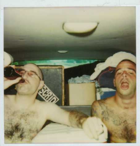 Jason: Outta our room before 11, after a feast at the NHOP. Ol' boy stiffed us and was nowhere to be found. Stopped for gas, beer, and syphillis water. No one seems to want a crab but me. Metal Beach my arse.