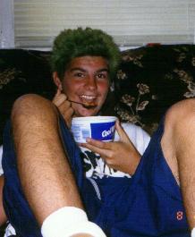 When Justin was a little shit(12 years of age)He wanted to play the drums.....But our little shit buddy never had any. So one day he got creative and found a bunch of different kinds of buckets and spermicides...i mean other stuff, and he start beating the hell out of them.. thus the beginning of justins legacy.Now he has a real drumset, but he sucks and he wished he still had his buckets. Justin is 15 now and he still continues to suck but he is a little better.